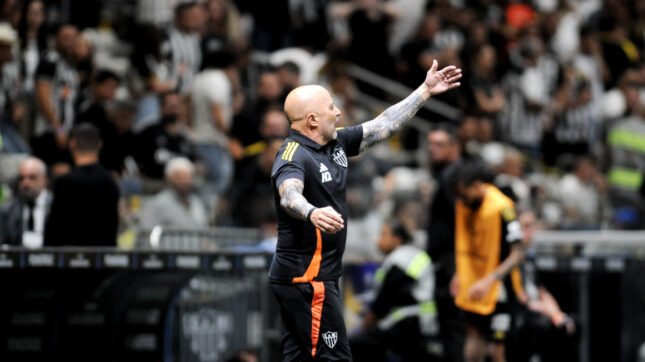 O técnico Jorge Sampaoli tomou uma medida surpreendente na noite desta quarta-feira (24/9), na Arena MRV, em Belo Horizonte. Aos 28 minutos do segundo tempo do duelo entre Atlético e Bolívar-BOL pelas quartas de final da Copa Sul-Americana, quando o placar ainda estava zerado, o argentino optou por tirar o lateral-esquerdo Guilherme Arana e o atacante Hulk – ídolos alvinegros.