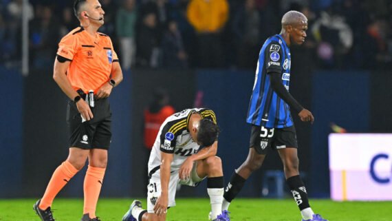 O Atlético protestou fortemente contra a arbitragem do jogo contra o Independiente del Valle-EQU, disputado na noite dessa terça-feira (22/10), pela ida da semifinal da Copa Sul-Americana. Em rede social, o Galo definiu a atuação do árbitro colombiano Carlos Betancur como uma “vergonha”.
