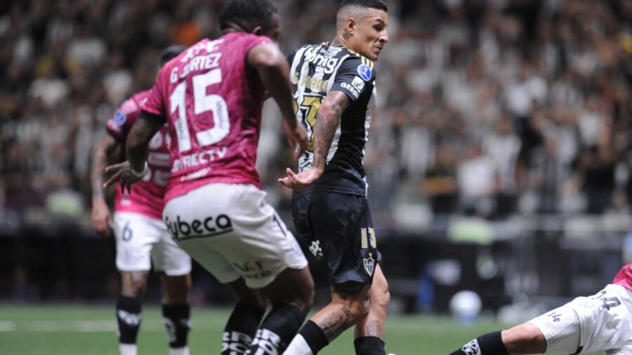 Aos 35 minutos do primeiro tempo, o Atlético se aproveitou da desorganização dos defensores do Independiente del Valle para marcar. Guilherme Arana recebeu livre na área para fazer o gol. Assista: