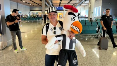 Entre as centenas de torcedores do Atlético presentes no terminal de embarque internacional do Aeroporto de Confins, na Região Metropolitana de Belo Horizonte, na tarde desta sexta-feira (21/11), um deles se destacou. Paulo César Seabra, de 55 anos, viajará ao Paraguai acompanhado de um “Galo Doido” gigante para torcer pelo clube mineiro na final da Copa Sul-Americana.