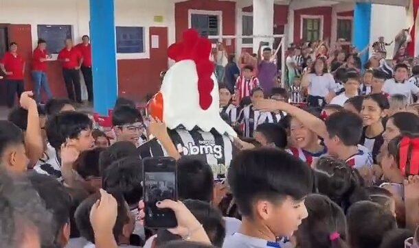 A visita fez a alegria das crianças da escola. Em vídeo compartilhado pelo Instituto Galo, os torcedores mirins gritaram “Galo” e se divertiram com o Galo Doido. Veja o vídeo: