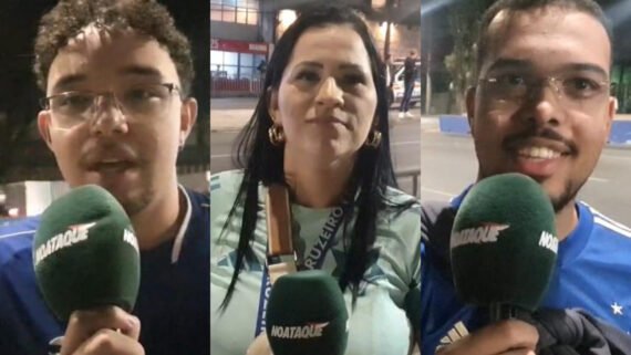 Lucas Fiuza, de 28 anos, lojista: “Cruzeirão cabuloso, nós estaremos sempre presentes, independentemente da situação. Estamos sempre apoiando. Cruzeiro sempre. E já vou falar o placar: 3 a 0 para nós, fora o baile”.