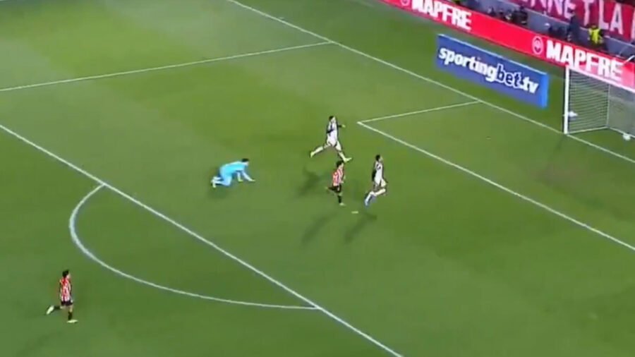 Lance ocorreu aos 27 minutos do segundo tempo, quando Benedetti recebeu assistência de Carrillo, invadiu a área e finalizou na saída de Rossi