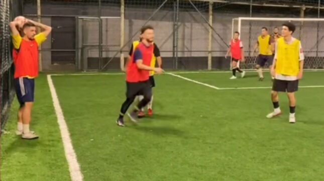 Jornalista da Globo aproveitou erro de marcação da equipe adversária em jogo amador e marcou gol após cobrança de lateral