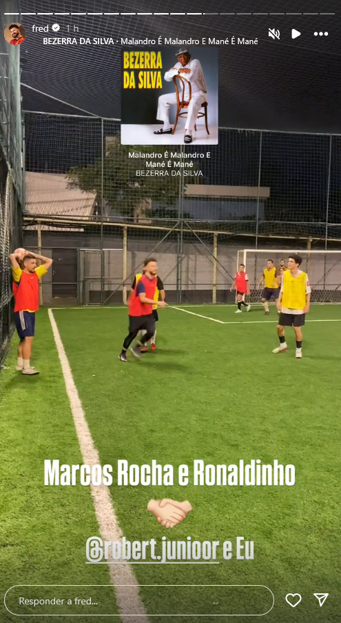 “Marcos Rocha e Ronaldinho. 🤝 Robert Júnior e eu (Fred)”, escreveu.