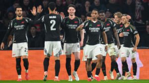 Nesta terça-feira, no Philips Stadium, na Holanda, o Arsenal goleou o PSV por 7 a 1, pela partida de ida das oitavas de final da Liga dos Campeões. Com gols de Timber, Nwaneri, Merino, Odegaard (2), Trossard e Calafiori, os Gunners encaminharam a vaga rumo à próxima fase. O único gol dos mandantes foi anotado por Noa Lang.