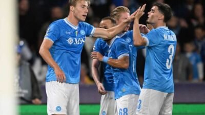 O Napoli contou com uma dobradinha mortal para conquistar sua primeira vitória na fase de liga da Champions. Nesta quarta-feira (1º/10), a equipe italiana recebeu o Sporting, no estádio Diego Armando Maradona, e venceu por 2 a 1. Højlund marcou os dois gols, com duas assistências de Kevin de Bruyne. Luis Suárez descontou para os portugueses.