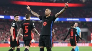 No entanto, mesmo com um a menos, Raphinha, aos 16 da etapa final, apareceu para garantir o triunfo catalão. O jogador roubou a bola no campo de ataque, carregou e finalizou rasteiro, no canto esquerdo do goleiro Anatoliy Trubin.