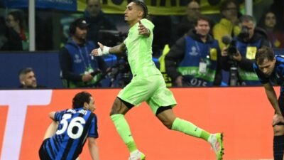 O Barcelona perdeu para a Inter de Milão, nesta terça-feira, por 4 a 3, pela partida de volta da semifinal da Liga dos Campeões, no San Siro. Autor do terceiro gol da equipe espanhola, Raphinha igualou Cristiano Ronaldo com o maior número de participações em uma única edição da competição.