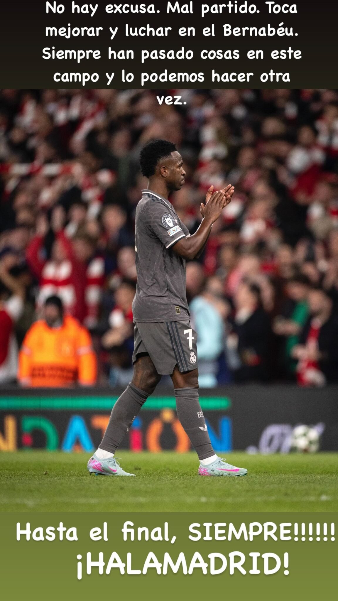 “Não há desculpas. Partida ruim. Agora é melhorar e lutar no Bernabéu. Sempre aconteceram coisas neste campo e podemos fazer isso (classificar) outra vez. Até o final, sempre. Hala Madrid”, escreveu nas redes sociais.