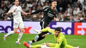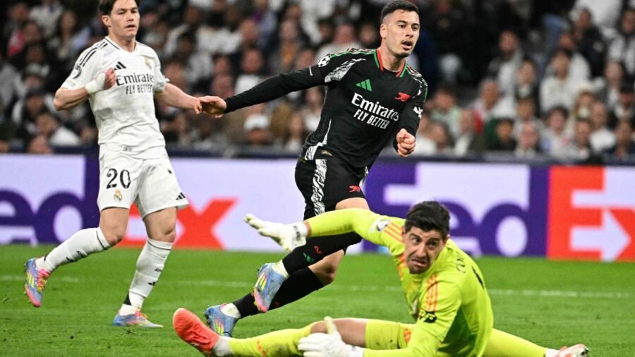 Depois de 16 anos, o Arsenal está de volta às semifinais da Champions League. Nesta quarta-feira (16/4), os ingleses venceram o Real Madrid por 2 a 1 no Estádio Santiago Bernabéu, pelo jogo de volta das quartas de final da competição. Bukayo Saka, que ainda perdeu um pênalti, e Gabriel Martinelli marcaram para os visitantes, enquanto o atacante Vinicius Júnior fez para os espanhóis.