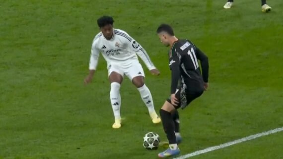 Em meio ao duelo decisivo entre Real Madrid e Arsenal pelas quartas de final da Champions League, um drible chamou atenção. O atacante Endrick levou uma ‘caneta’ do meio-campista Martinelli.