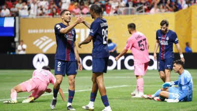 Neste domingo, em duelo válido pelas oitavas de final da Copa do Mundo de Clubes, o Paris Saint-Germain enfrentou o Inter Miami de Messi no Mercedes-Benz Stadium, goleou por 4 a 0 e avançou à próxima fase. João Neves (2), Avilés (contra) e Hakimi balançaram as redes para a equipe francesa.