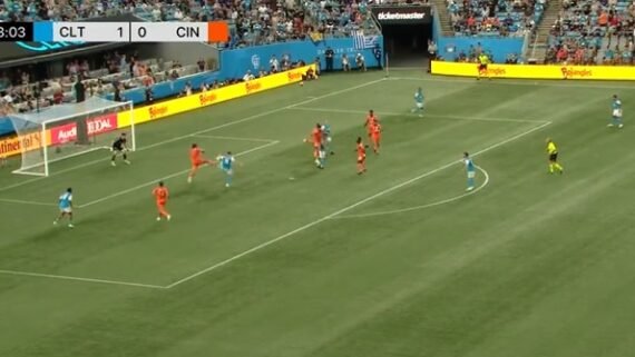 Will Palaszczuk soou como o famoso ratinho da Disney durante transmissão de um gol do Charlotte FC na vitória por 2 a 0 sobre o Cincinnati nesse sábado (8/7), ao vivo, na Apple TV