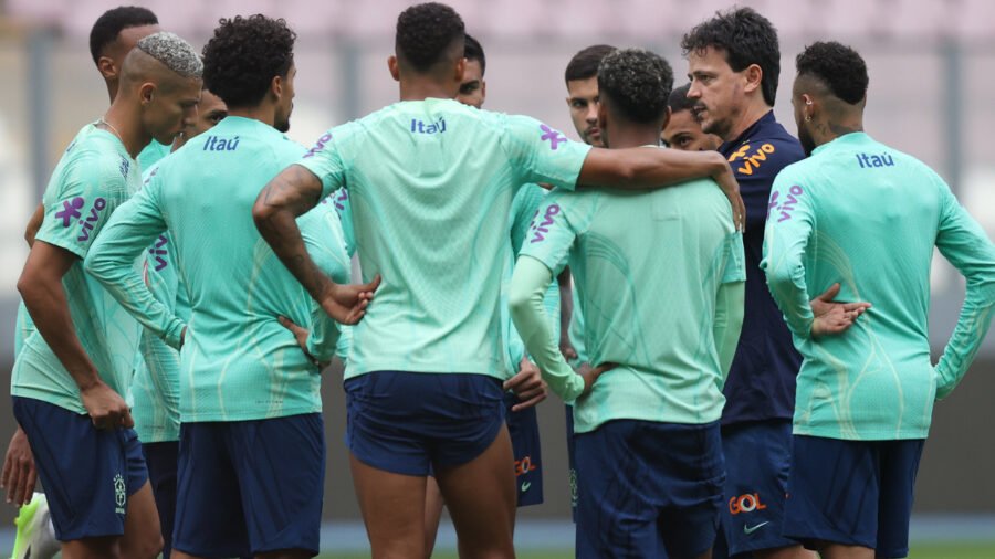 Sem jogadores suspensos e com todos os convocados bem fisicamente, Fernando Diniz teve todo o plantel à disposição nos treinamentos e decidiu repetir a escalação utilizada na goleada sobre a Bolívia. Contestado por torcedores, Richarlison seguirá como centroavante da equipe, junto de Raphinha e Rodrygo no trio de ataque.