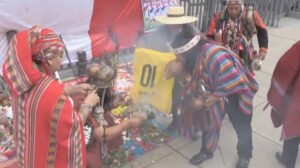 “Fizemos um ritual especial para que sua mente fique turva e não possa alcançar o que está buscando, que são os gols”, declarou o xamã Walter Alarcón, enquanto faz um feitiço para anular a eficácia do inimigo.