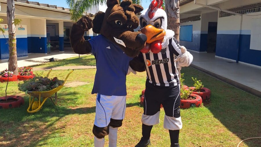‘Mascotes’ de Cruzeiro e Atlético causam furor em escola na Grande BH