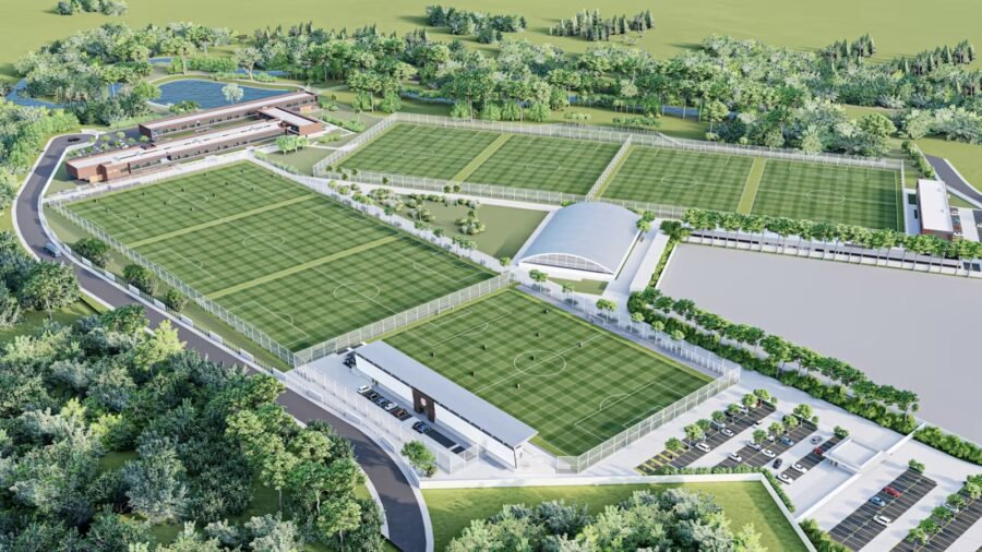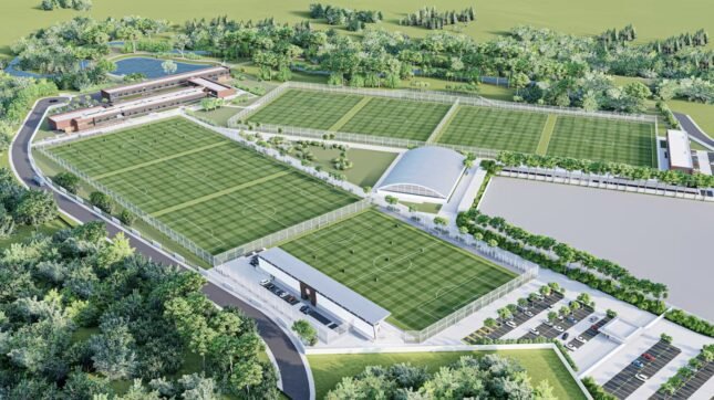 A construção do CT utiliza uma área de 157 mil metros quadrados e vai contar com oito campos, um mini estádio, alojamentos para todas as categorias, restaurante, duas academias, pista de corrida, salas de estudo, sala de imprensa, biblioteca, auditório e demais áreas.