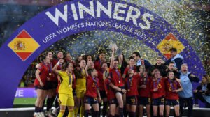 Aintana Bonmatí e Mariona Caldentey marcaram os gols que deram o troféu da primeira edição da Liga das Nações Feminina para a Seleção Espanhola. A Espanha é também a atual campeã do mundo – bateu a Inglaterra no ano passado para levantar a taça mais cobiçada do futebol.