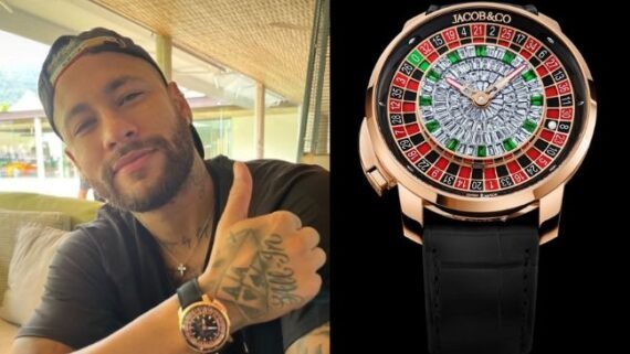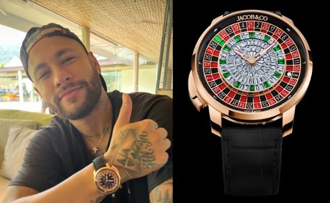 O atacante brasileiro Neymar posou nas redes sociais com o relógio Jacob & Co. Casino Tourbillon, avaliado em 280 mil dólares (mais de R$ 1,3 milhão na cotação de hoje).