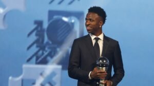 Após ficar no segundo lugar da Bola de Ouro, Vinícius Júnior foi eleito o melhor jogador do mundo pela Fifa no prêmio The Best. O atacante contou com os votos dos representantes brasileiros para conquistar a premiação.