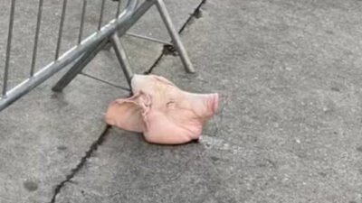 Uma cabeça de porco foi deixada em um dos portões do Allianz Parque antes da partida entre Palmeiras x Corinthians, marcada para essa quinta-feira (6/2), às 20h (de Brasília), pelo Campeonato Paulista. A imagem foi compartilhada pelo repórter Alex Müller, da TV Gazeta.