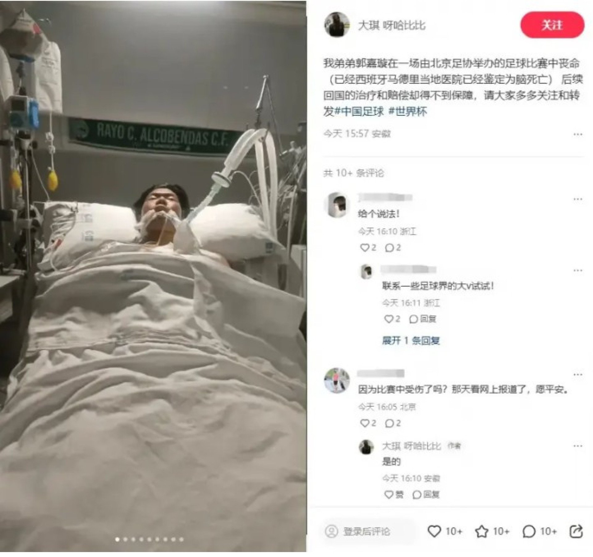 Em comunicado nas redes sociais, o RC Alcobendas desejou forças a Guo Jiaxuan. “Queremos expressar a nossa mais profunda preocupação com o jogador da delegação da Associação de Futebol de Pequim que sofreu um acidente durante um jogo particular contra a nossa equipe. Enviamos todo o nosso apoio para ele, à sua família e à equipa neste momento difícil. Desejamos uma rápida recuperação”.
