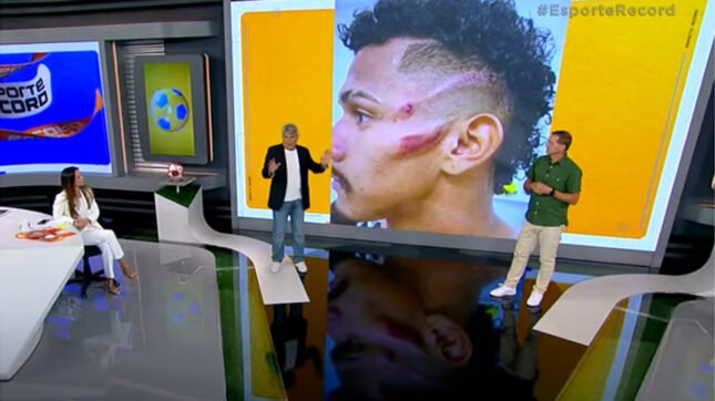 Na verdade, o atleta era Fernando Sobral. E o corte na região da bochecha foi fruto de um episódio antigo, no Campeonato Brasileiro de 2020. O meio-campista do Ceará levou um pontapé de Juninho, do Fortaleza, que acabou expulso na ocasião.