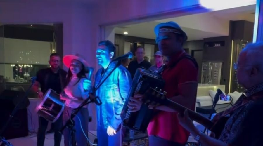 Mano Walter também foi ao evento e chamou a atleta para cantar no palco. Não é a primeira vez que eles formam ‘dupla’. Em 2019, ele publicou um vídeo nas redes sociais em que cantam a música “Juramento do Dedinho”.