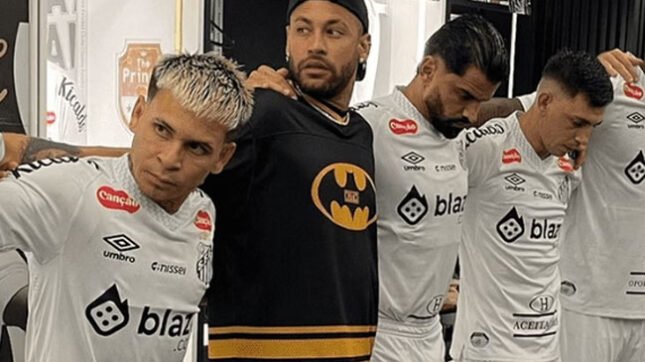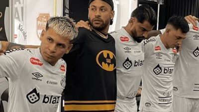 No domingo passado (6/4), o astro, vestido com uma camisa do ‘Homem-Morcego’, esteve no vestiário do Santos, na Vila Belmiro, antes do empate por 2 a 2 com o Bahia. No entanto, ele não ficou no estádio para acompanhar a partida, pois tinha compromisso pela Kings League – ele é presidente da equipe Furia FC.