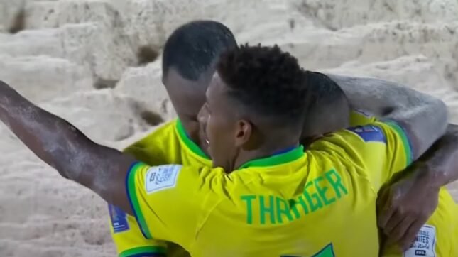 A Seleção Brasileira venceu El Salvador, por 3 a 1, nesta sexta-feira (2/5), pela primeira rodada da fase de grupos da Copa do Mundo de Futebol de Areia, na Paradise Arena, em Victoria, capital de Seicheles. Os gols do Brasil foram marcados por Rodrigo, Thanger e Lucão.
