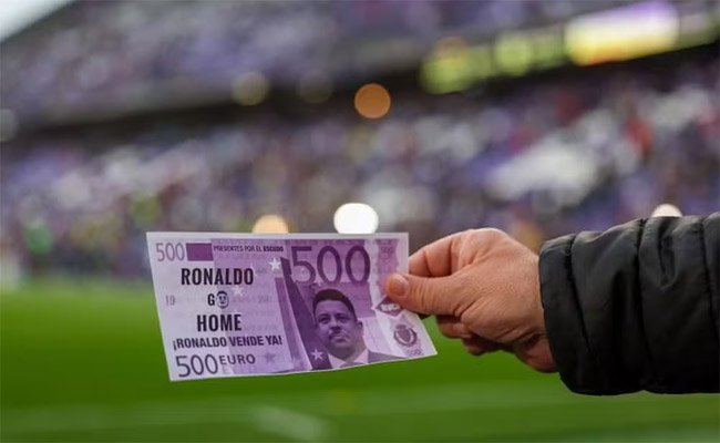 Ronaldo é criticado pelos torcedores do Valladolid por abandono ao clube. Na partida contra o Barcelona, a torcida atirou notas falsas de euros com o rosto do Fenômeno estampado.