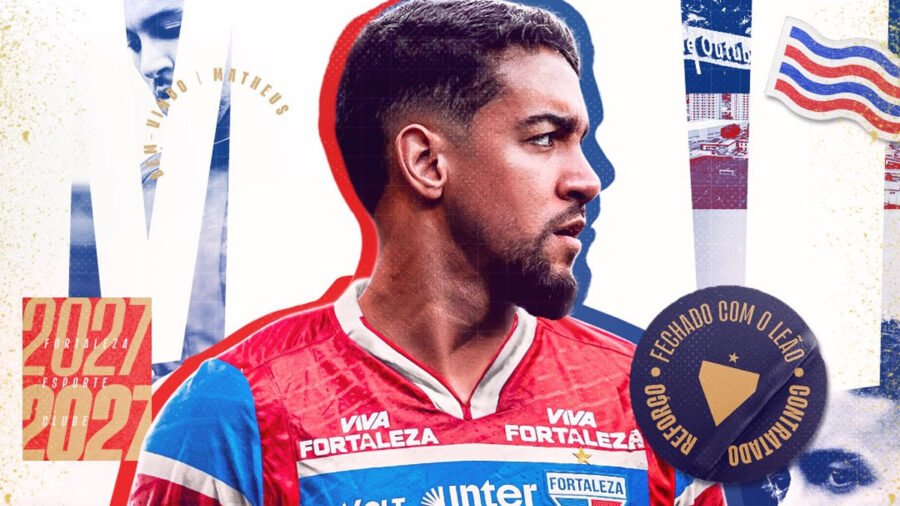O Fortaleza anunciou, nessa terça-feira (27/5), a contratação do meia Matheus Pereira. O jogador de 27 anos assinou contrato com o Leão até o fim de 2027, com opção de renovação por mais um ano.