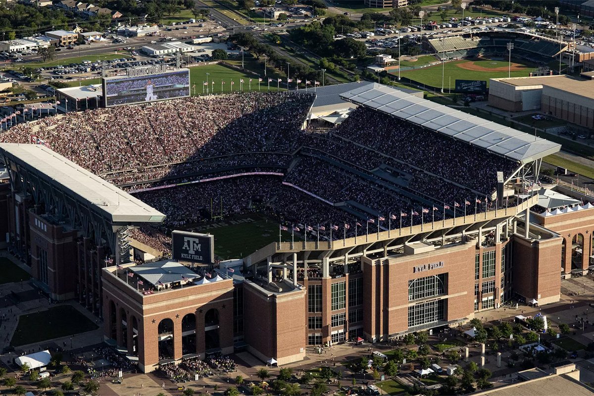 Completando a lista de estádios com mais de 100 mil lugares está o Kyle Field, no campus da Texas A&M University. Sua capacidade oficial é de 102.733 espectadores, tornando-o um dos maiores estádios universitários dos EUA. É a casa do time de futebol americano Texas A&M Aggies e é famoso pela tradição de “12º Homem”, onde a torcida se considera um jogador adicional devido ao apoio incondicional e ao barulho ensurdecedor.