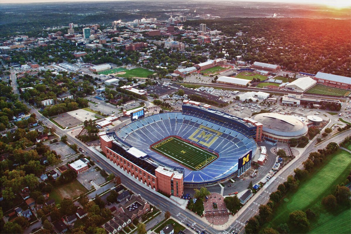Apelidado de “The Big House”, o Michigan Stadium é o maior estádio dos Estados Unidos e o segundo maior do mundo em capacidade, com 107.601 lugares. Embora seja predominantemente usado para jogos de futebol americano universitário, especialmente os do time Michigan Wolverines, ele já sediou partidas de futebol, incluindo um amistoso entre Real Madrid e Manchester United, em 2014, que atraiu mais de 109 mil espectadores – um recorde de público para um jogo de futebol nos EUA na época.