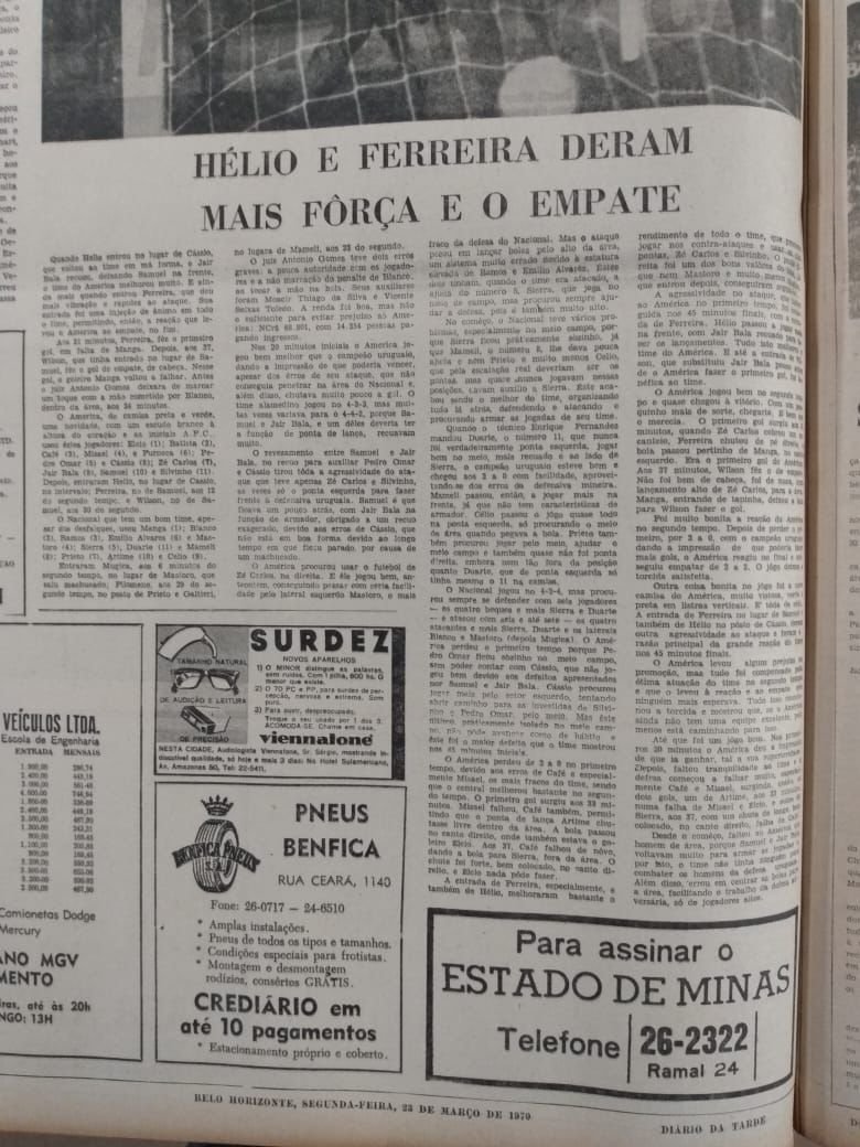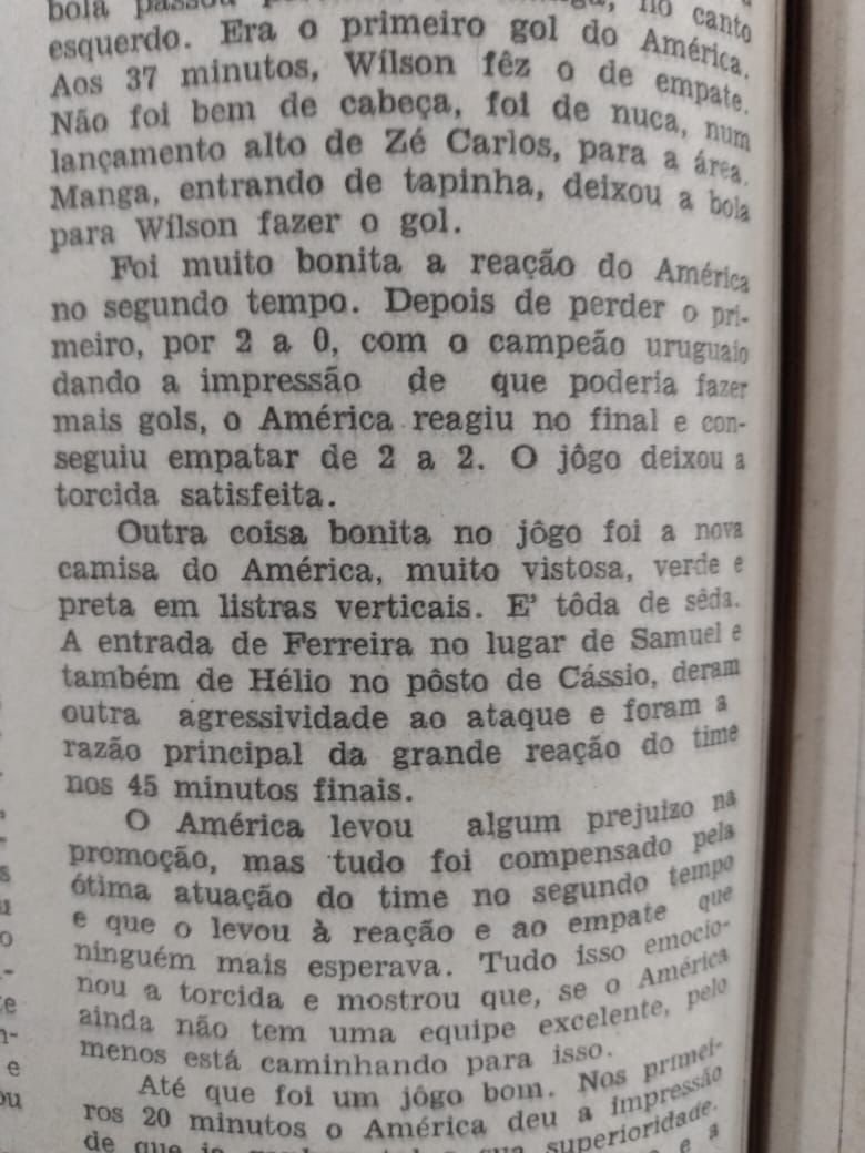 A primeira aparição do novo uniforme em campo foi em um amistoso entre América e Nacional, do Uruguai. A edição de 23 de março de 1970 do jornal Diário da Tarde reagiu com entusiasmo à novidade: “Outra coisa bonita no jogo foi a nova camisa do América, muito vistosa, verde e preta em listras verticais. E toda de sêda.”