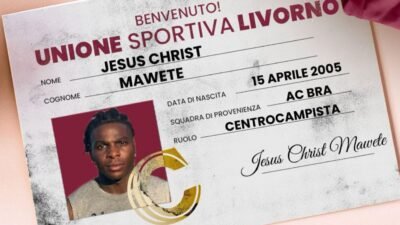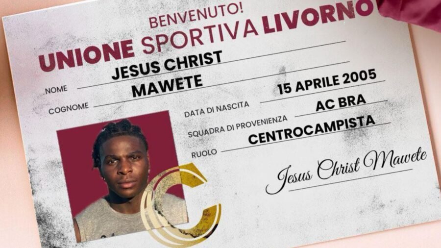 O Unione Sportiva Livorno 1915, da Itália, anunciou, nesse sábado (19/7), o novo reforço para a temporada. A curiosidade fica por conta do nome: Jesus Cristo Mawete.