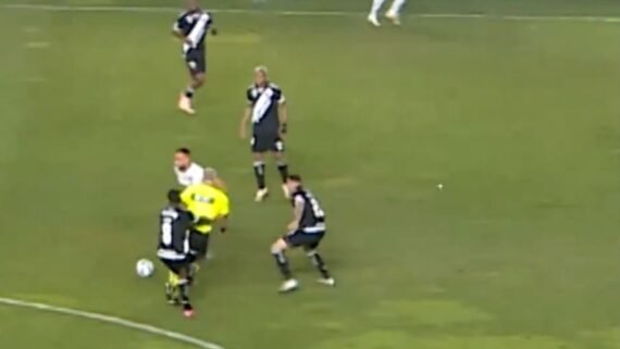 O lance inusitado aconteceu no segundo tempo, quando o cronômetro marcava 12 minutos. Arthur Cabral recebeu a bola de costas no meio-campo, quando Hugo Moura chegou para tentar o desarme.