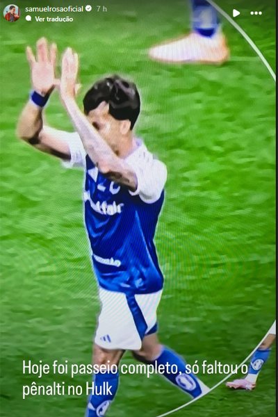 “Hoje foi passeio completo. Só faltou o pênalti no Hulk”, publicou o frontman do Skank, em legenda com a imagem de Kaio Jorge fazendo o sinal de roubo. O centroavante recebeu o cartão vermelho do árbitro Paulo Cesar Zanovelli da Silva (Fifa-MG) pela insinuação.