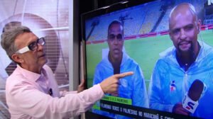 “Denilson e Felipe Melo… Olha lá… Nossa Senhora! Vou continuar trabalhando mais 30 anos como comentarista, porque os caras são fracos demais”, disparou Neto, exibindo a participação ao vivo da dupla na Globo em um monitor do estúdio da Band.