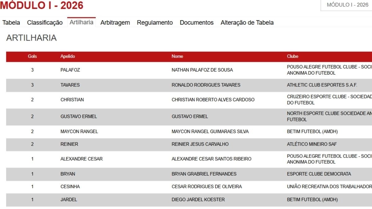 O atacante Nathan Palafoz, do Pouso Alegre, ganhou um “gol de presente” do árbitro Daniel da Cunha Oliveira Filho (CBF). Devido a um erro no registro da súmula de uma partida, o jogador de 26 anos aparece como artilheiro do Campeonato Mineiro no site oficial da Federação Mineira de Futebol (FMF), com três gols marcados.