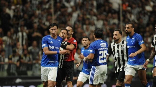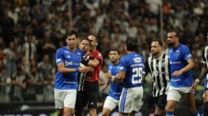 Em meio ao tumulto, Hulk puxou a camisa do zagueiro celeste Fabrício Bruno. “Tira a mão, tira a mão! Vai tomar no c*”, disparou o defensor.