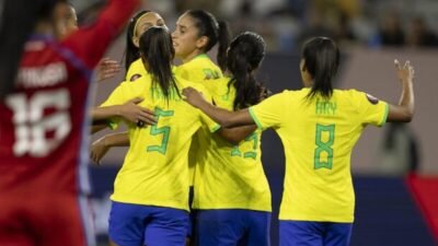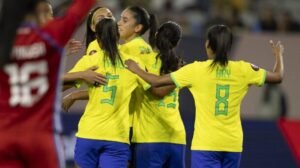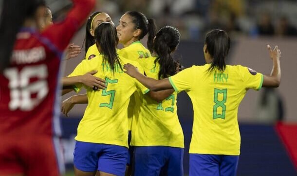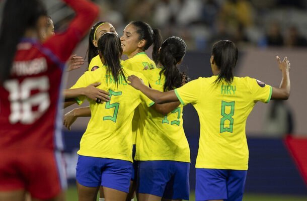 A Seleção Feminina não tomou conhecimento do Panamá e aplicou uma goleada por 5 a 0, em San Diego (EUA), pela Copa Ouro. As meninas do Brasil já haviam garantido a classificação, mas o placar elástico permitiu que elas mantivessem o 100% de aproveitamento. A propósito, possibilitou que assegurasse a liderança do Grupo B ao alcançar os nove pontos. Os gols da partida foram anotados por Geyse, duas vezes, além de Bia Menezes, Rafaelle e Debinha.