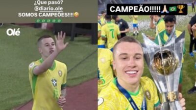 “O que aconteceu, diário Olé? Somos campeões”, postou o lateral Igor Serrote, de 19 anos.