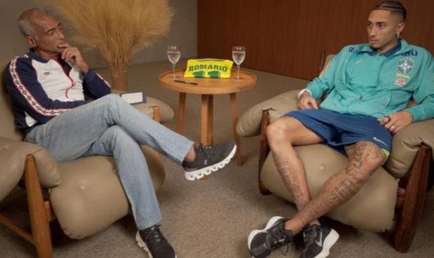 Romário comemorou a repercussão de sua entrevista com Raphinha antes do jogo entre Brasil e Argentina. Em entrevista à Romário TV, o atacante do Barcelona apimentou o clássico e disse que daria “porrada” nos rivais.