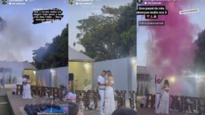 Ao lado da esposa Natália Gonzaga, Matheusinho reuniu amigos e família para revelar que será pai de uma menina. A criança se chamará Serena.