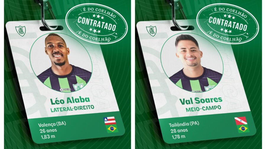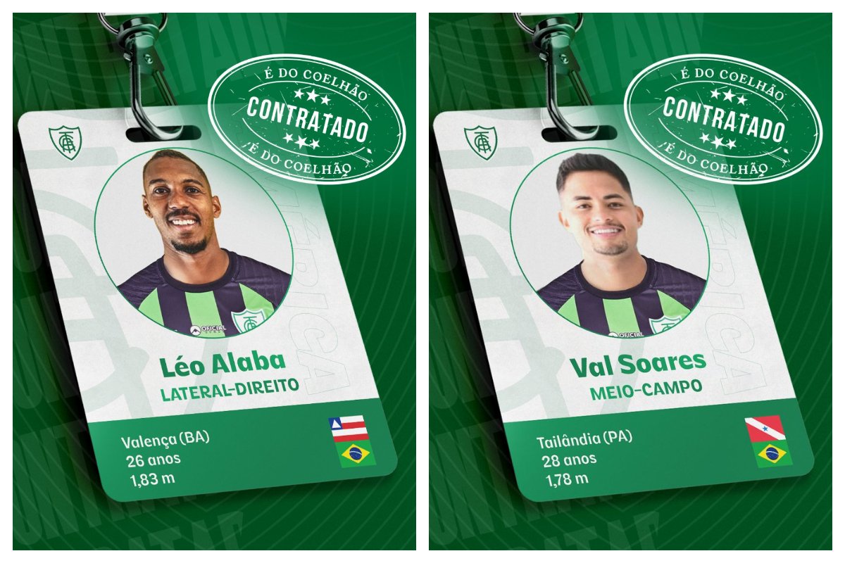 O América anunciou, nesta sexta-feira (2/1), o meio-campista Val Soares e o lateral-direito Léo Alaba como reforços para a temporada 2026.