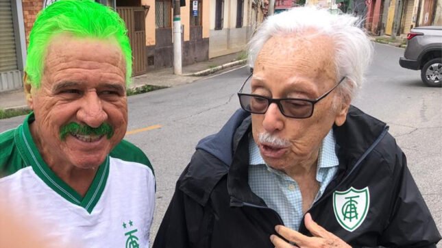 Aos 93 anos, presidente de honra do América prestigia jogo do clube no Mineiro