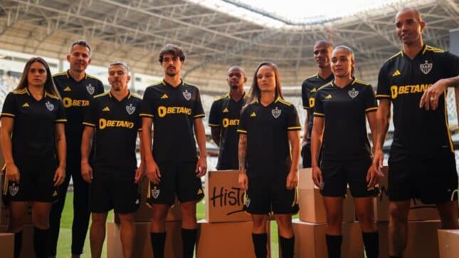 Em uma ação publicitária com atletas das equipes feminina e masculina, além de ídolos históricos, o Atlético lançou, na última sexta-feira (25/8), sua terceira camisa para 2023. O modelo é predominantemente preto, com detalhes na cor amarela.