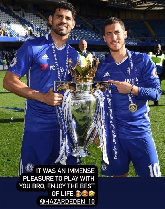 Ex-Atlético e hoje no Botafogo, o atacante Diego Costa parabenizou o belga Eden Hazard pela carreira e o aconselhou a aproveitar a nova vida fora do futebol.